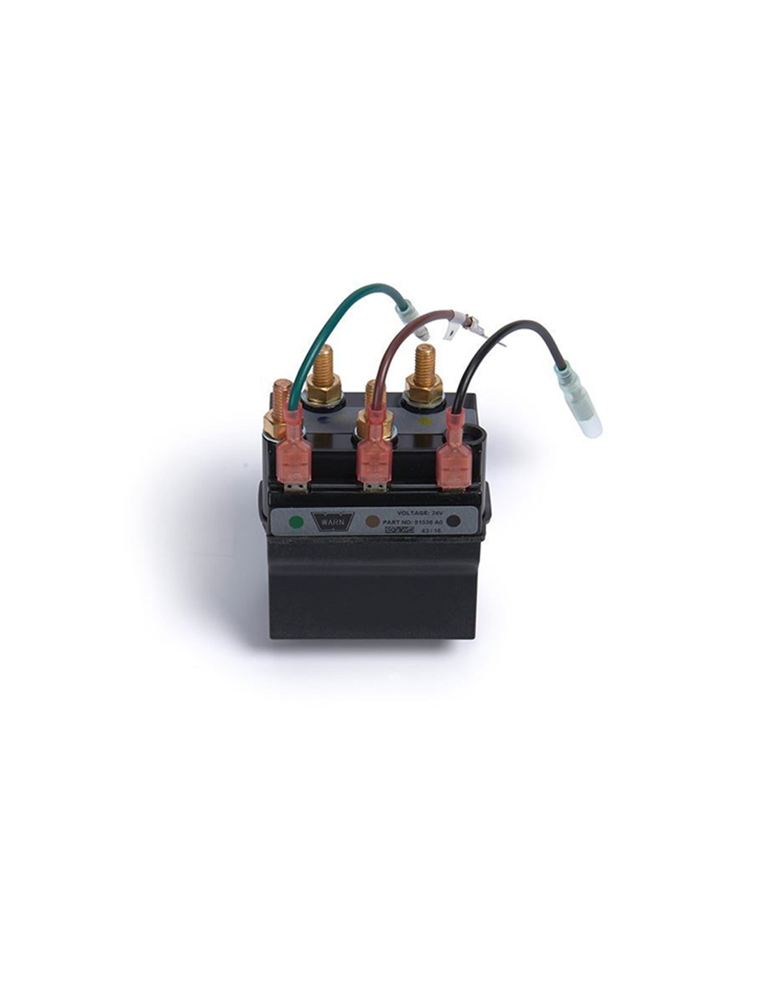 Ce contacteur ou solénoïde 24V est une pièce détachée d'origine Warn indispensable pour assurer l'alimentation et l'inversion de polarité du moteur de votre treuil industriel.